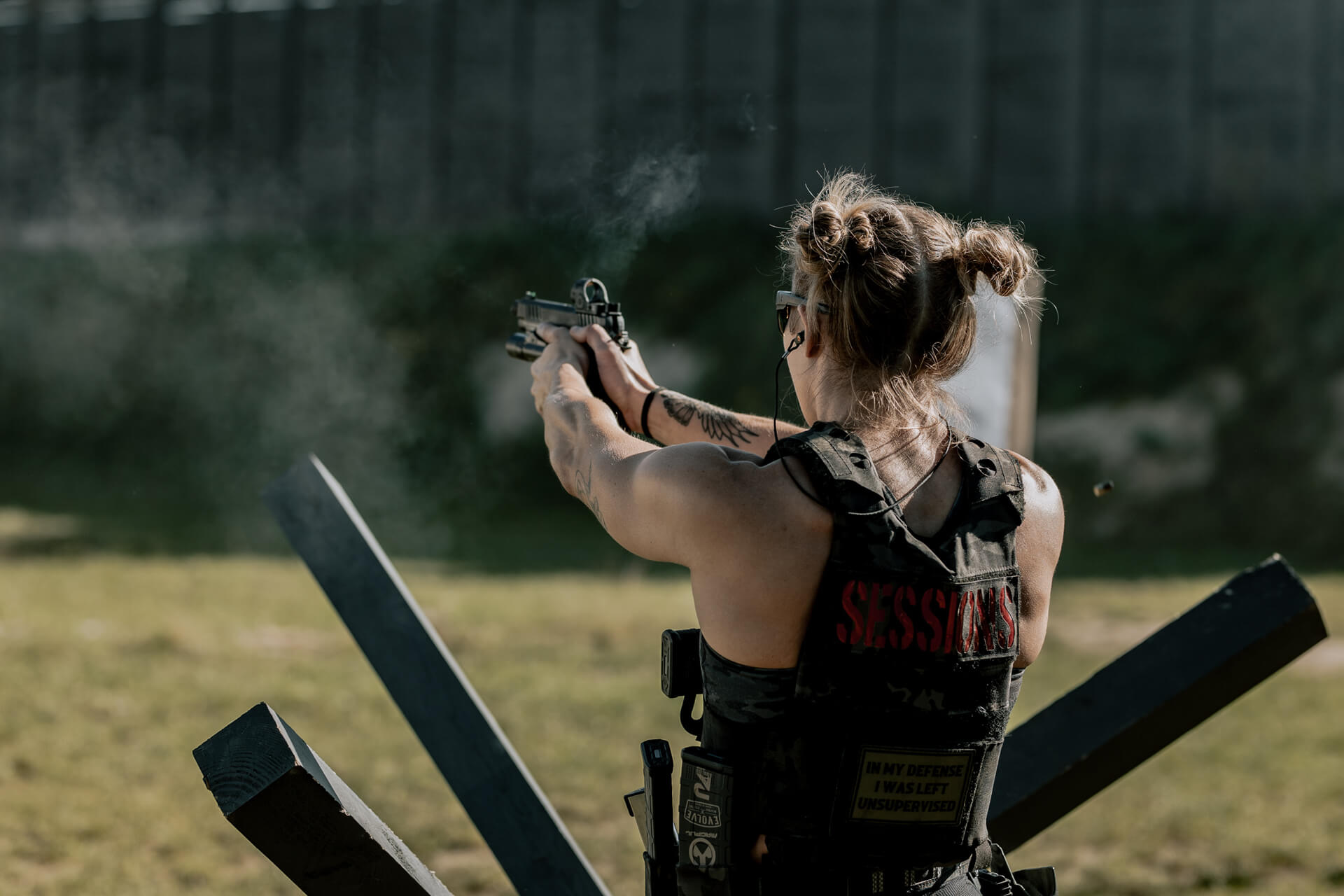 - Część strzelecka – Pistolet/Karabin gdzie nabędziesz wiedzę z zakresu obsługi manualnej broni w myśl zasad TTG (w tym warunki bezp.). Poznasz specyfikę strzelań zarówno z pistoletu jak i karabinu w oparciu o afiliowane cele TTG zarówno statycznie jak i pod presją zmęczenia wywołanego wykonywaniem zadań fizycznych.